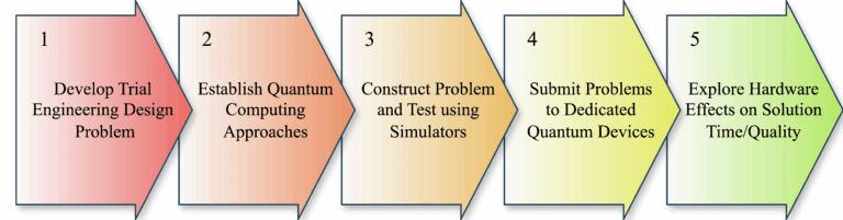 This begs the question, “Are there a fundamentally different approaches to representing and resolving Engineering Design design spaces such that they can be explored more effectively?”. Quantum Computer Aided Engineering is exploring how Quantum Computing (QC) can provide novel methods of modelling and navigating design spaces. This requires the development reference models for solving Engineering Design problems with quantum algorithms, the design experiments to find promising pairings between problems and algorithms, and a clearer definition the capabilities of today’s devices.